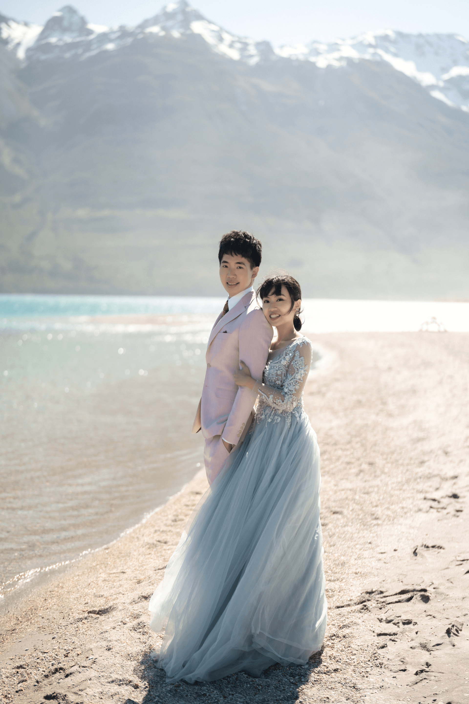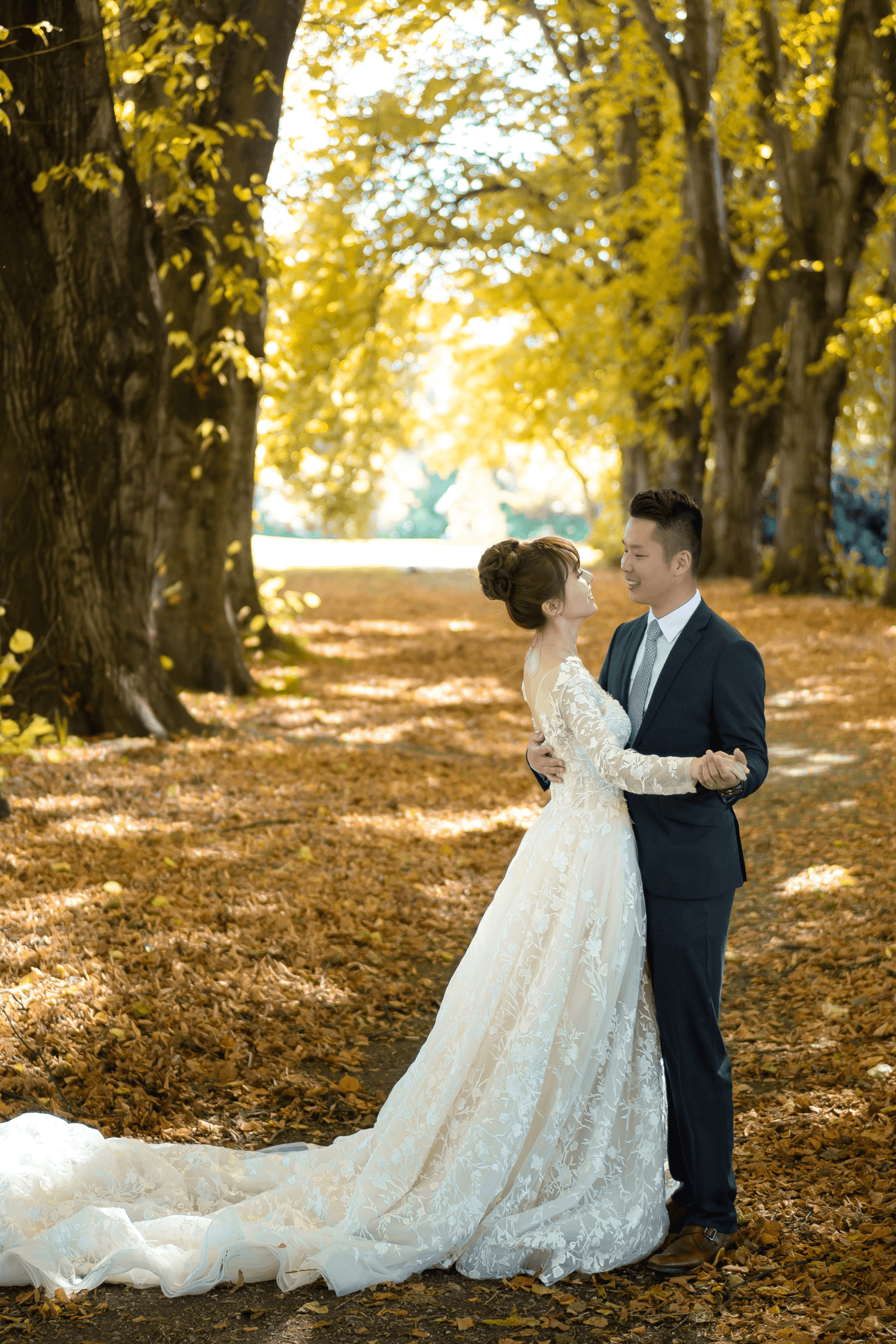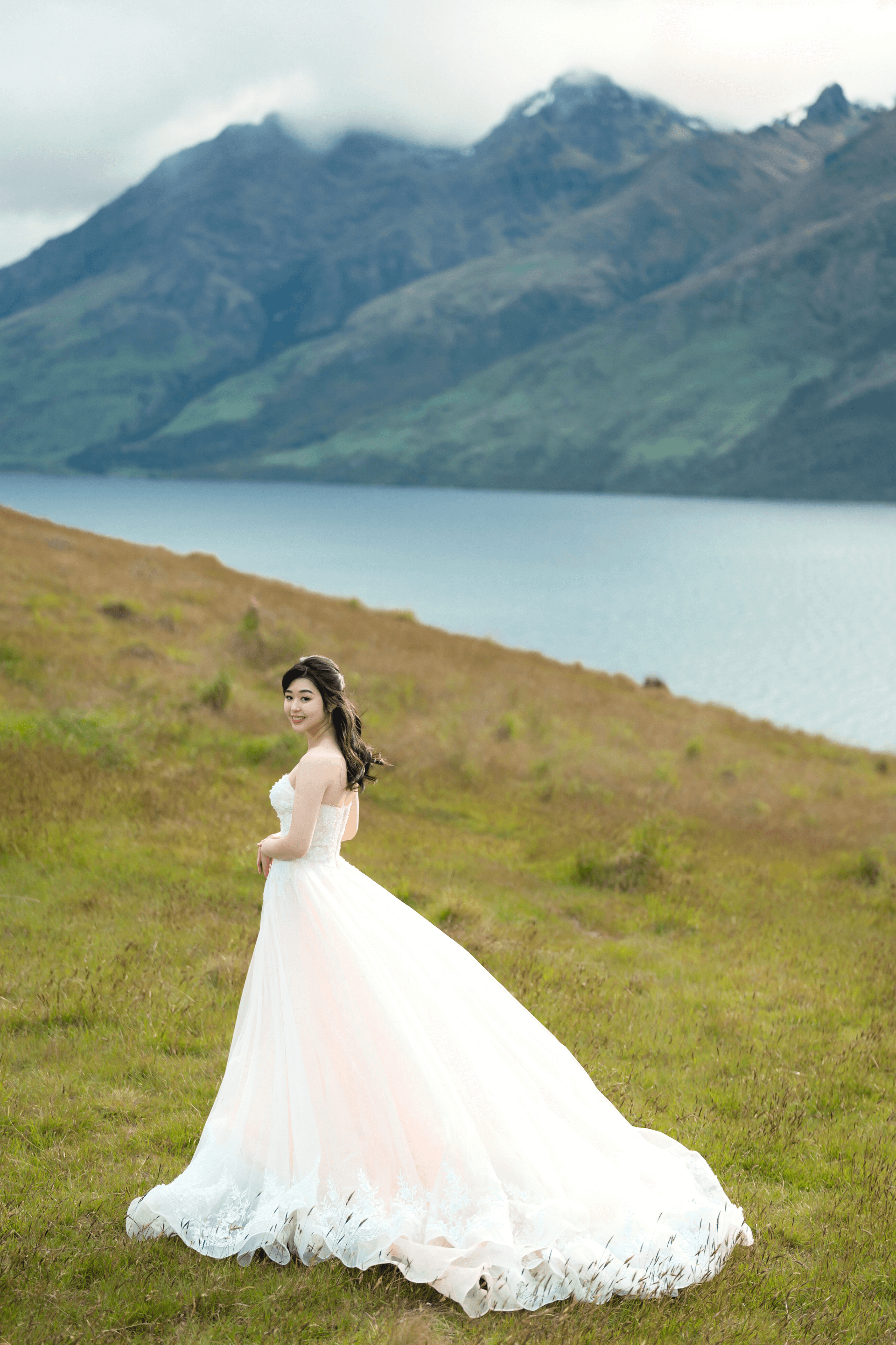 我們的白紗與禮服多來自臺灣中高端手工婚紗店,其中也有歐美婚紗設計款。每一件婚紗的細節無論是刺繡、水鑽、蕾絲等都能感受出手工的細膩質感。我們透過一件件親自的挑選來選擇符合紐西蘭拍攝的婚紗款式,用意是為了讓新人能減輕行李的負擔,就能在這挑選到喜愛婚紗。由於這些婚紗禮服全都是用於外景拍攝,對於婚紗的折舊影響相當大,所以我們也很頻繁的替換我們的婚紗,也會不定期的挑選一些新的婚紗來進口,盡可能讓婚紗整體質感維持在最好的水平。