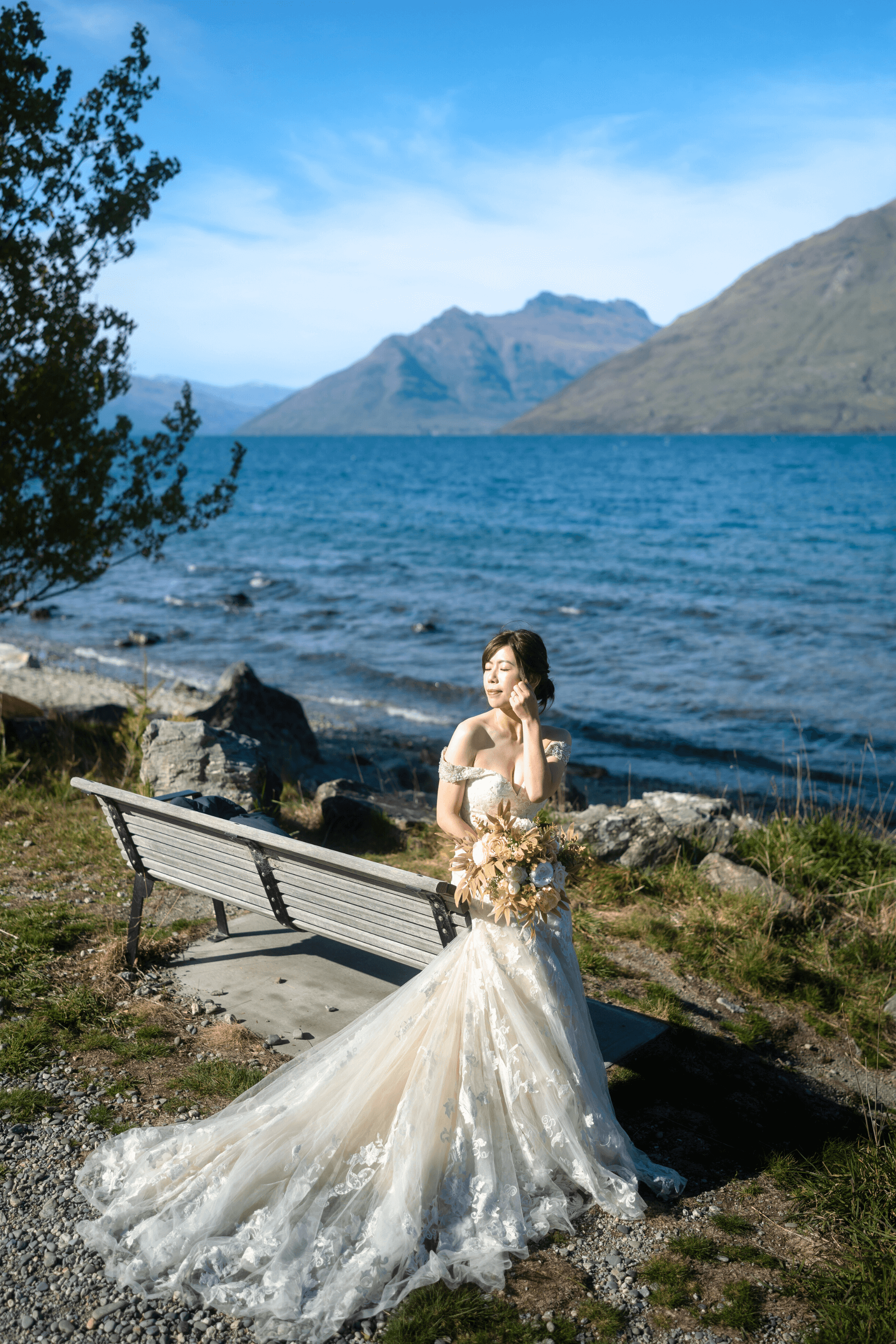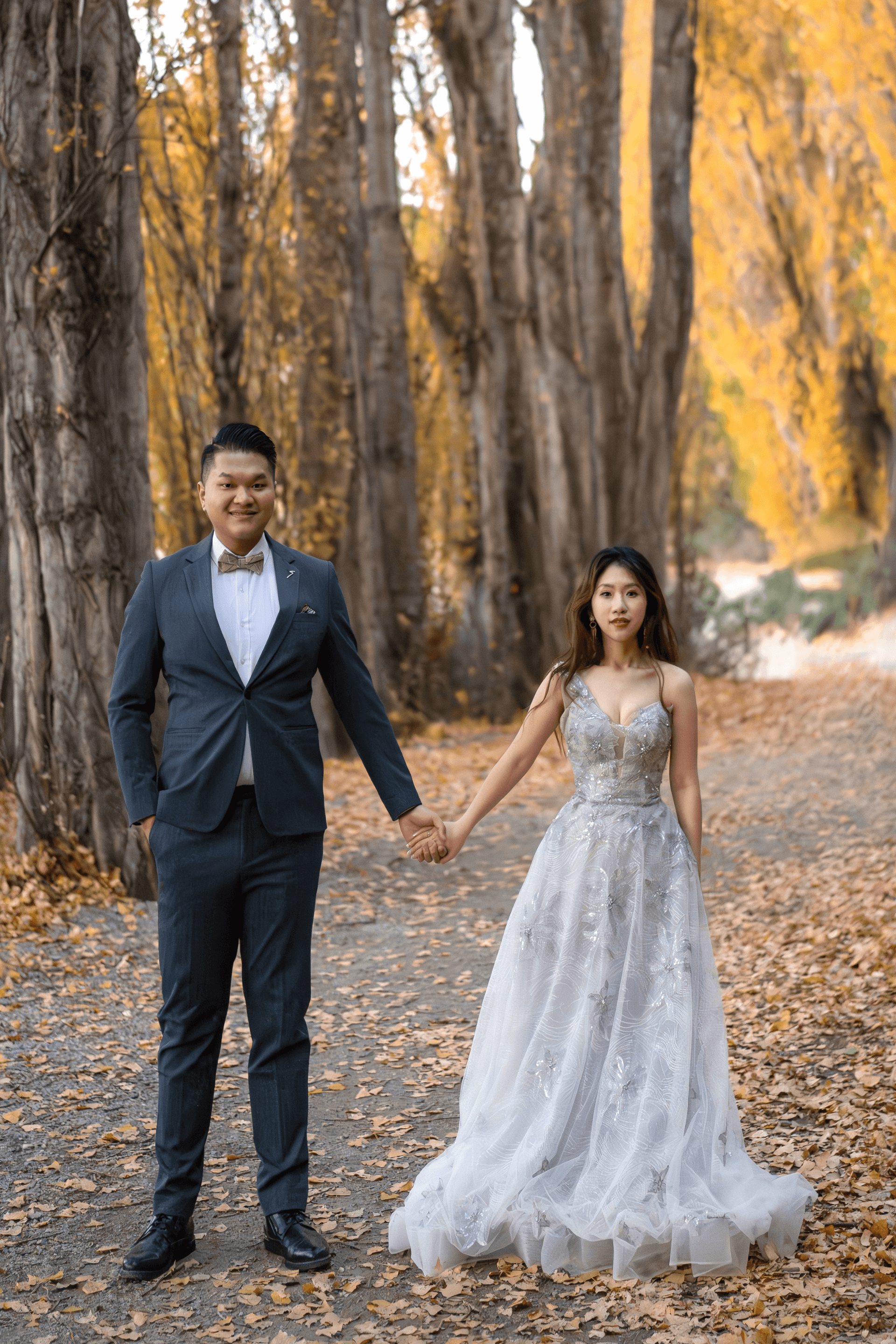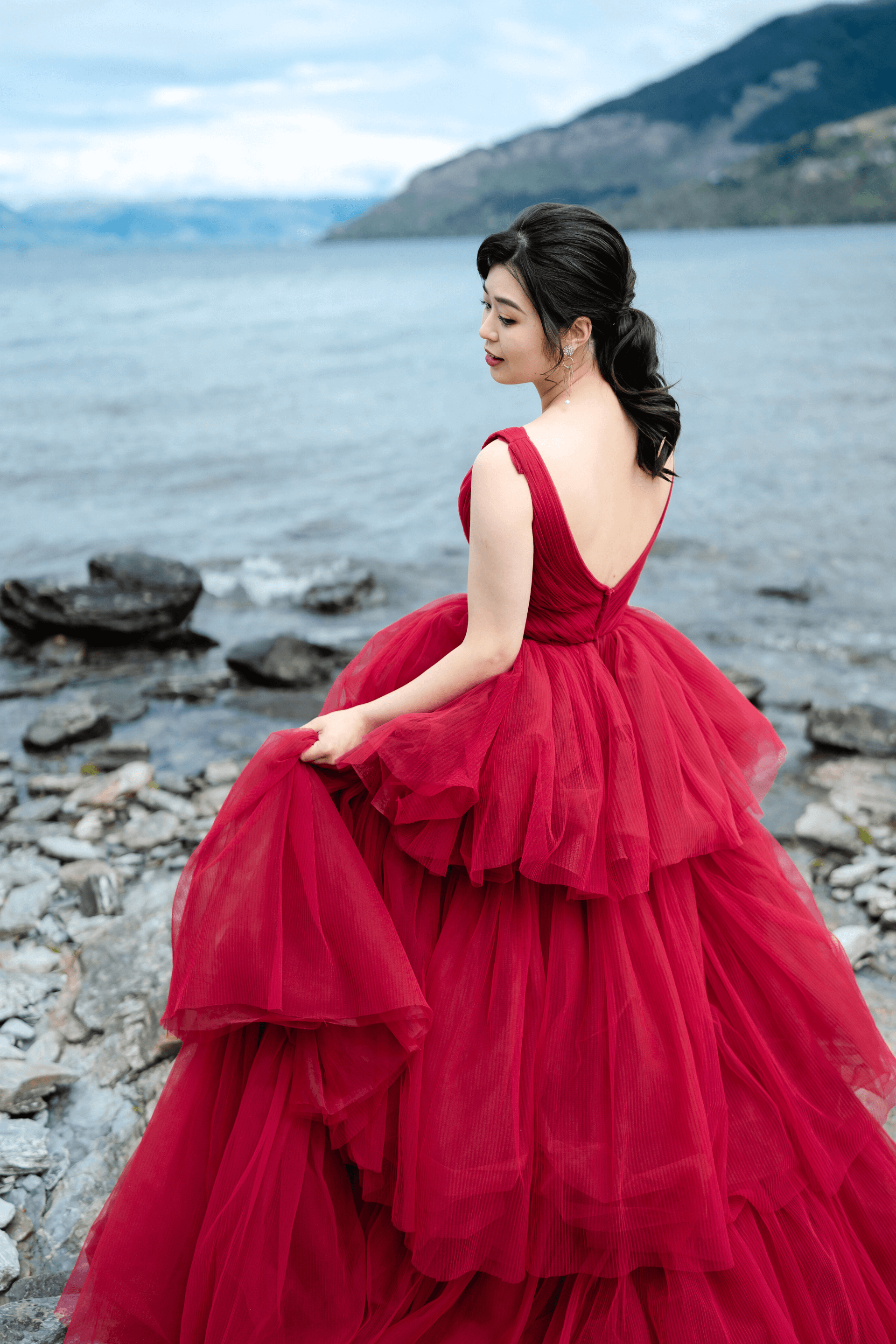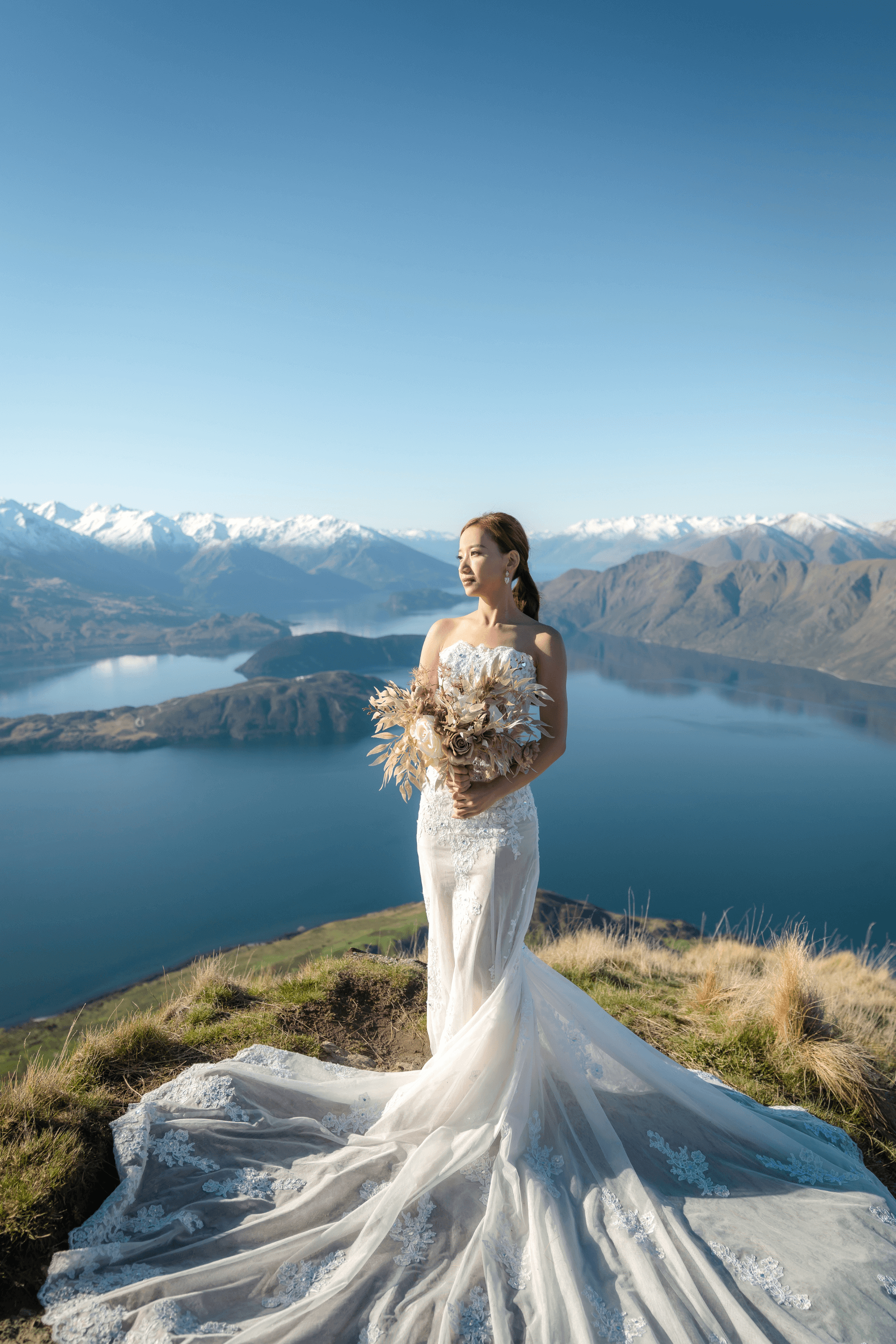 我們的白紗與禮服多來自臺灣中高端手工婚紗店,其中也有歐美婚紗設計款。每一件婚紗的細節無論是刺繡、水鑽、蕾絲等都能感受出手工的細膩質感。我們透過一件件親自的挑選來選擇符合紐西蘭拍攝的婚紗款式,用意是為了讓新人能減輕行李的負擔,就能在這挑選到喜愛婚紗。由於這些婚紗禮服全都是用於外景拍攝,對於婚紗的折舊影響相當大,所以我們也很頻繁的替換我們的婚紗,也會不定期的挑選一些新的婚紗來進口,盡可能讓婚紗整體質感維持在最好的水平。